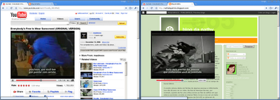 O teste fatídico foi abrir o Youtube. Funcionou muito bem, assisti vídeos numa boa. Mas alguma coisa bizarra acontece quando mudamos de aba, veja só: