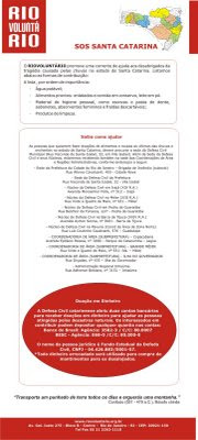 Faz tempo que eu não apareço nesse blog. Acho que todos sabem das grandes enchentes que derem em Santa Catarina e que deixaram milhares de pessoas sem nada. Estou aqui para dar uma força na divulgação de duas ações para coleta de doações em prol das vítimas dessa tragédia. Um grande show aberto ao público… Continue reading SOS Santa Catarina